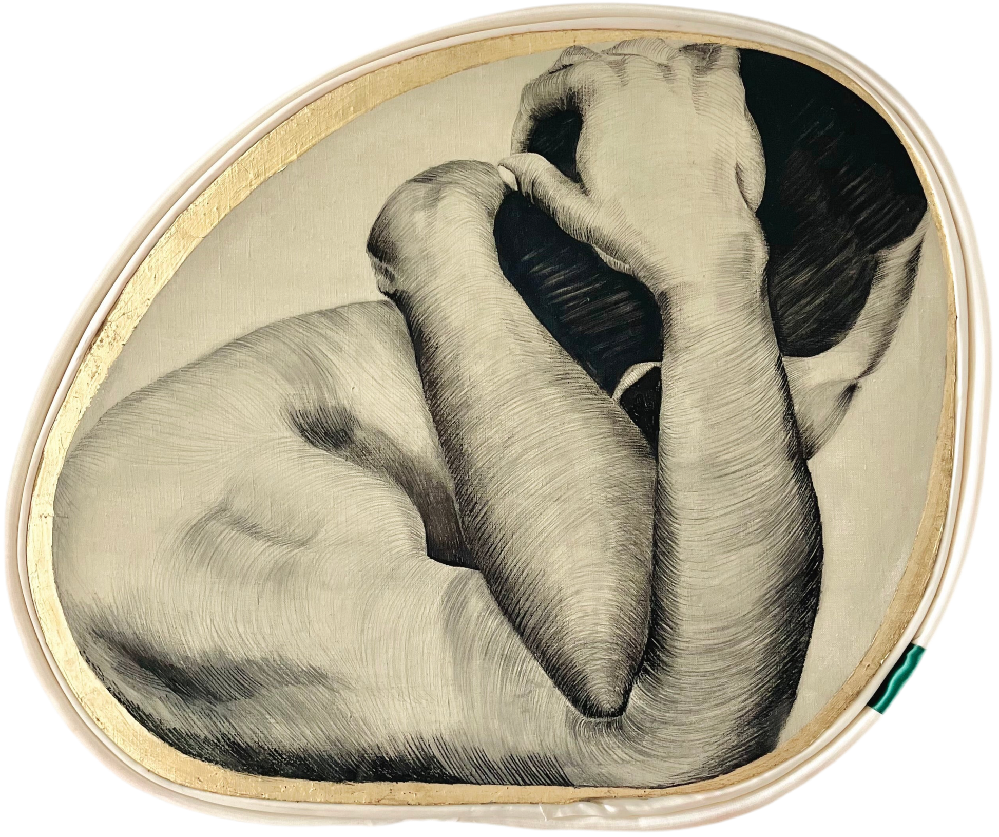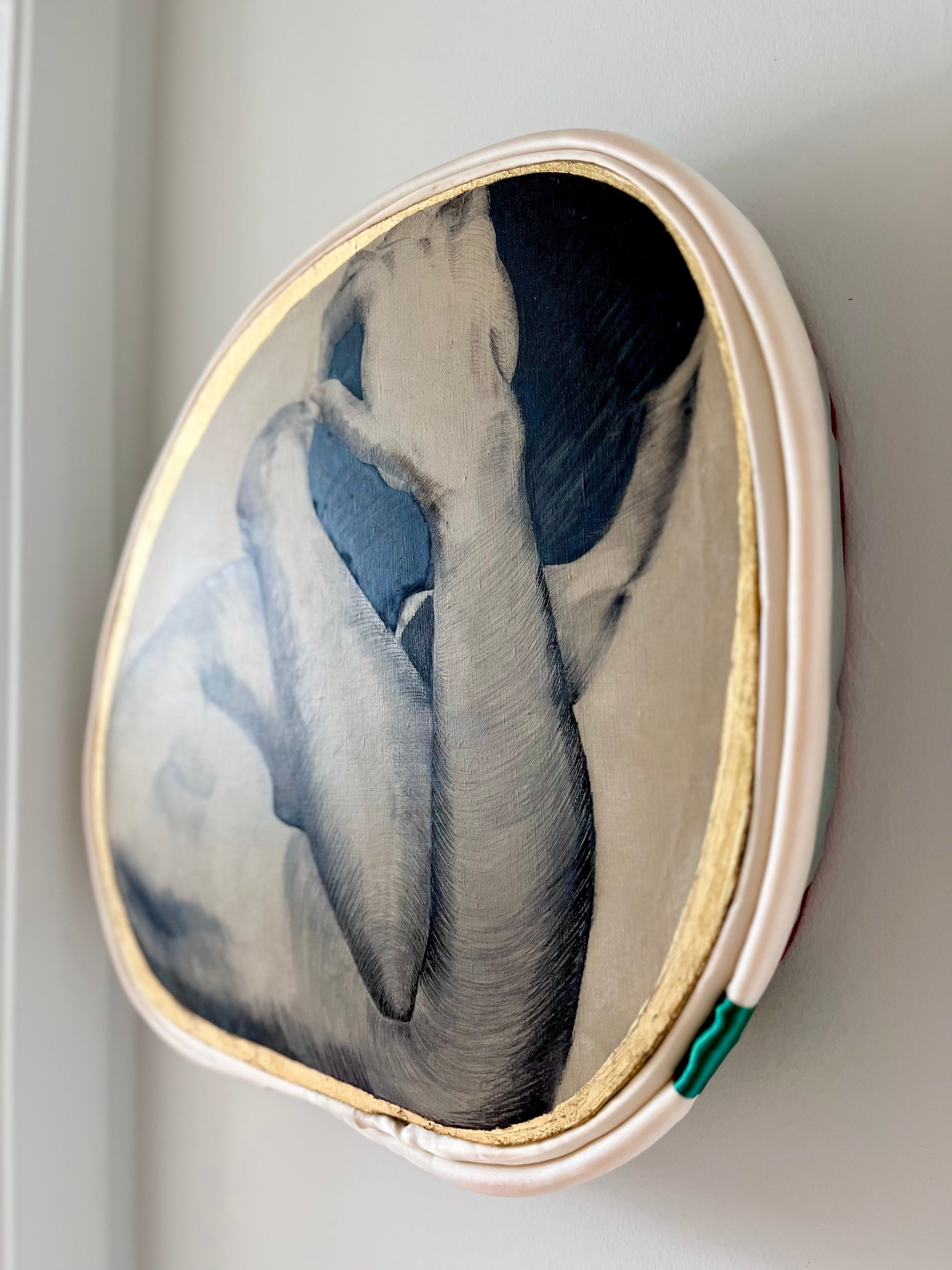MATERIALS: Oil on linen (hand prepared), ink, silk, gold leaf.