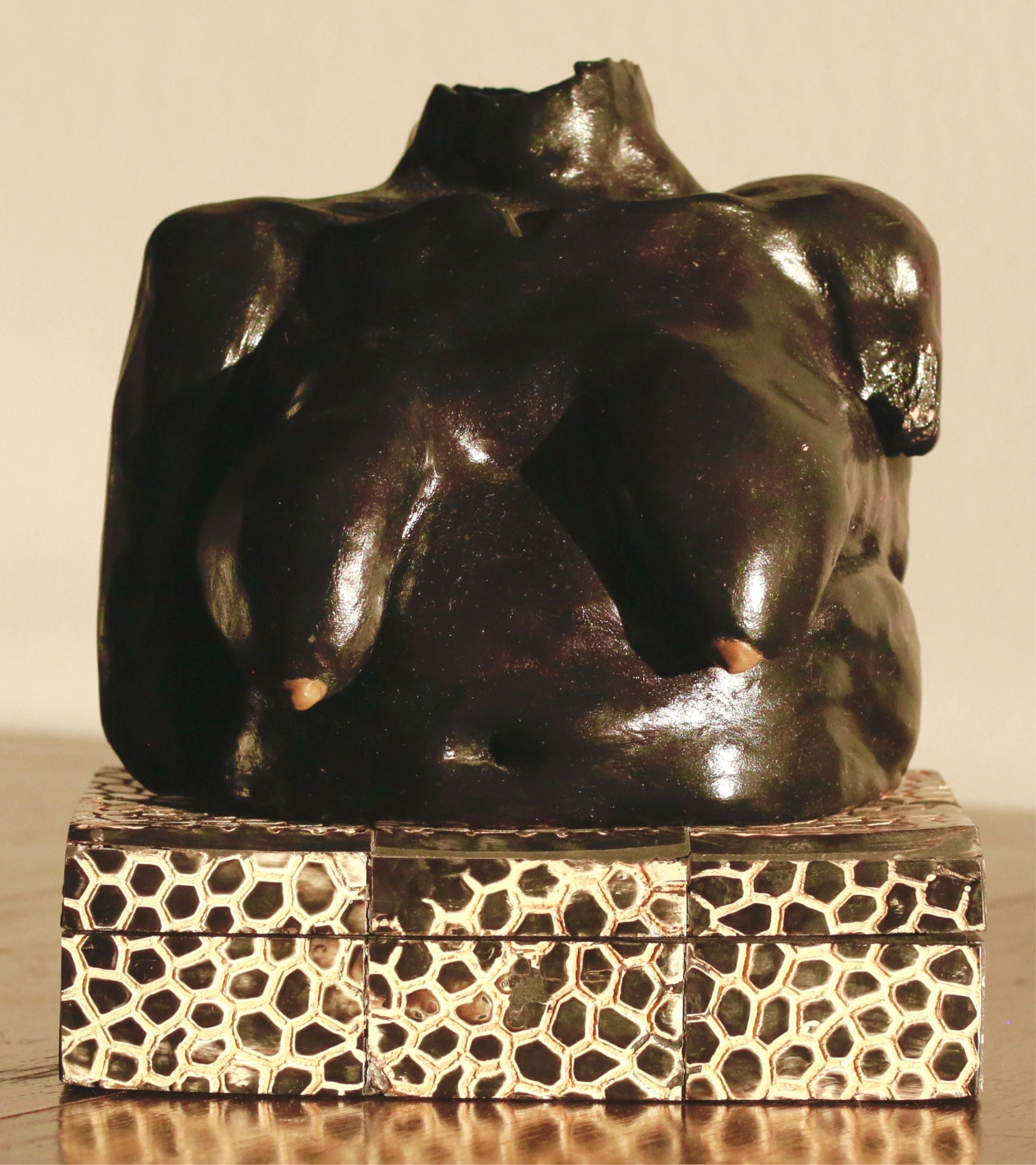 Terracotta, acrylic paint, varnished.