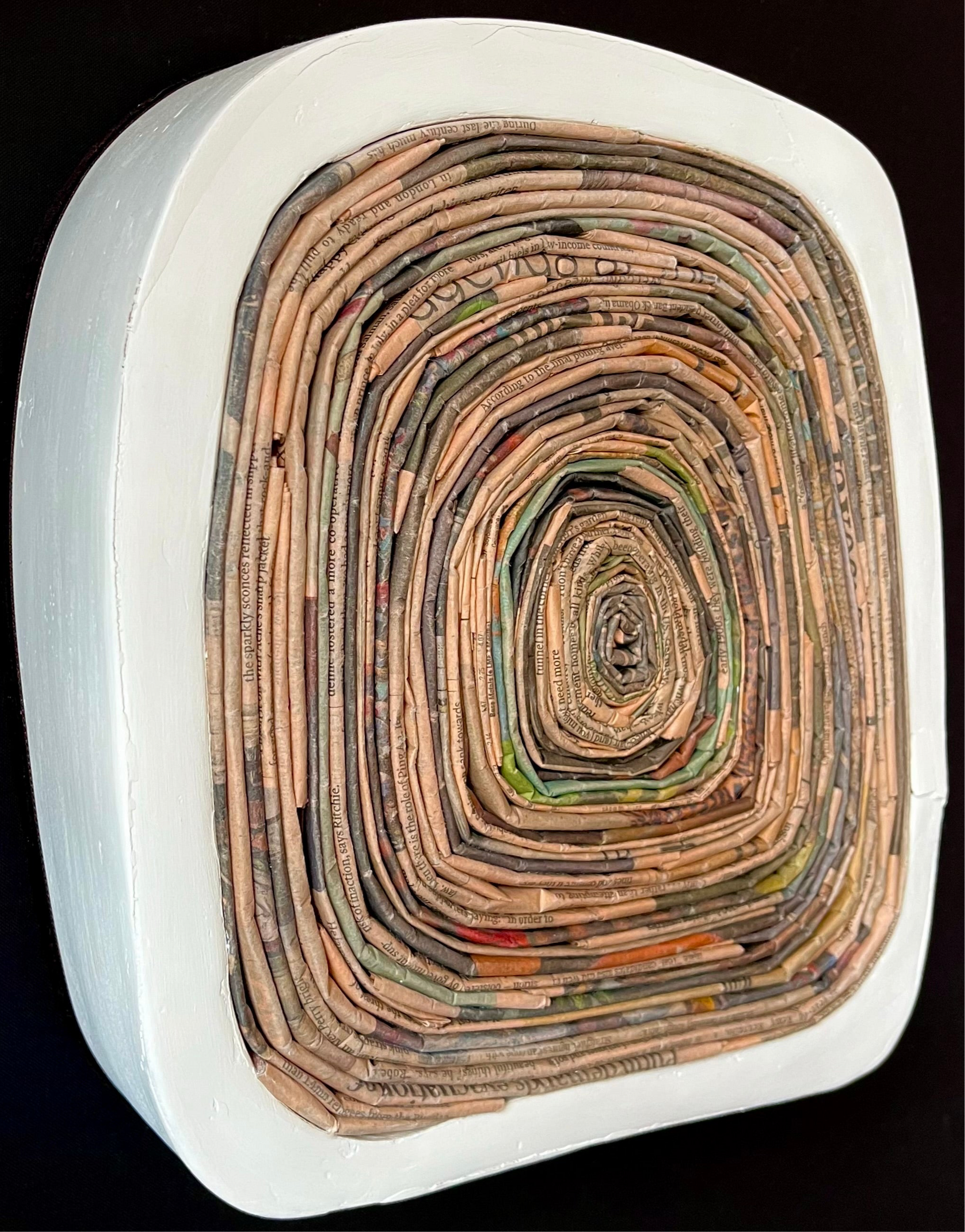 Oil, acrylic on linen, FT newspaper, lumber, plaster.